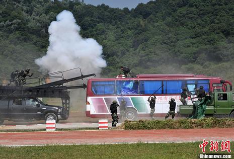 作為亞運安保主力的武警廣東總隊官兵,連日來在某訓練基地進行演練。為應對恐怖事件,該總隊強化了體能、攀登、擒敵、射擊、偵查、野外生存等訓練,并邀請反恐專家研究處置策略和戰術手段。